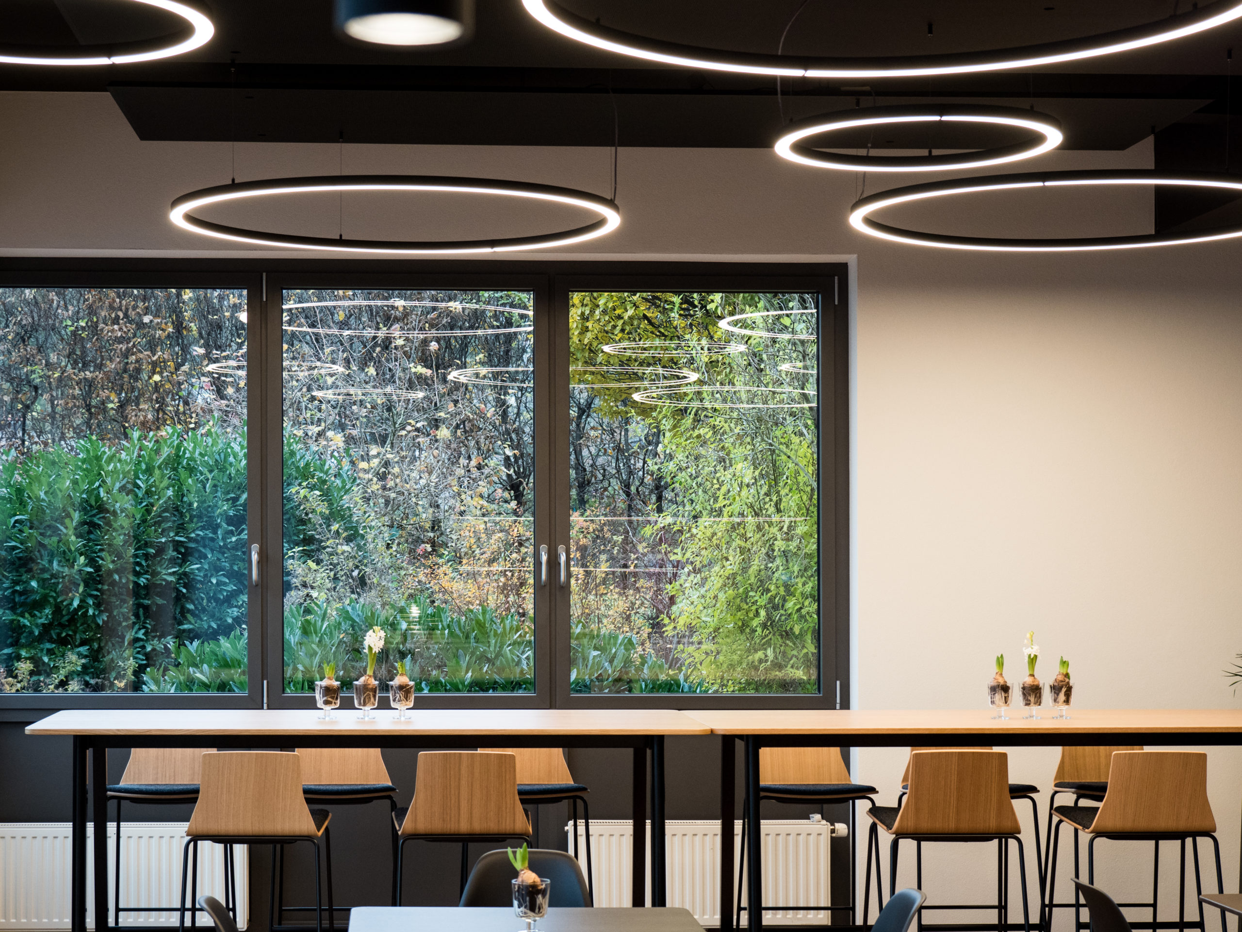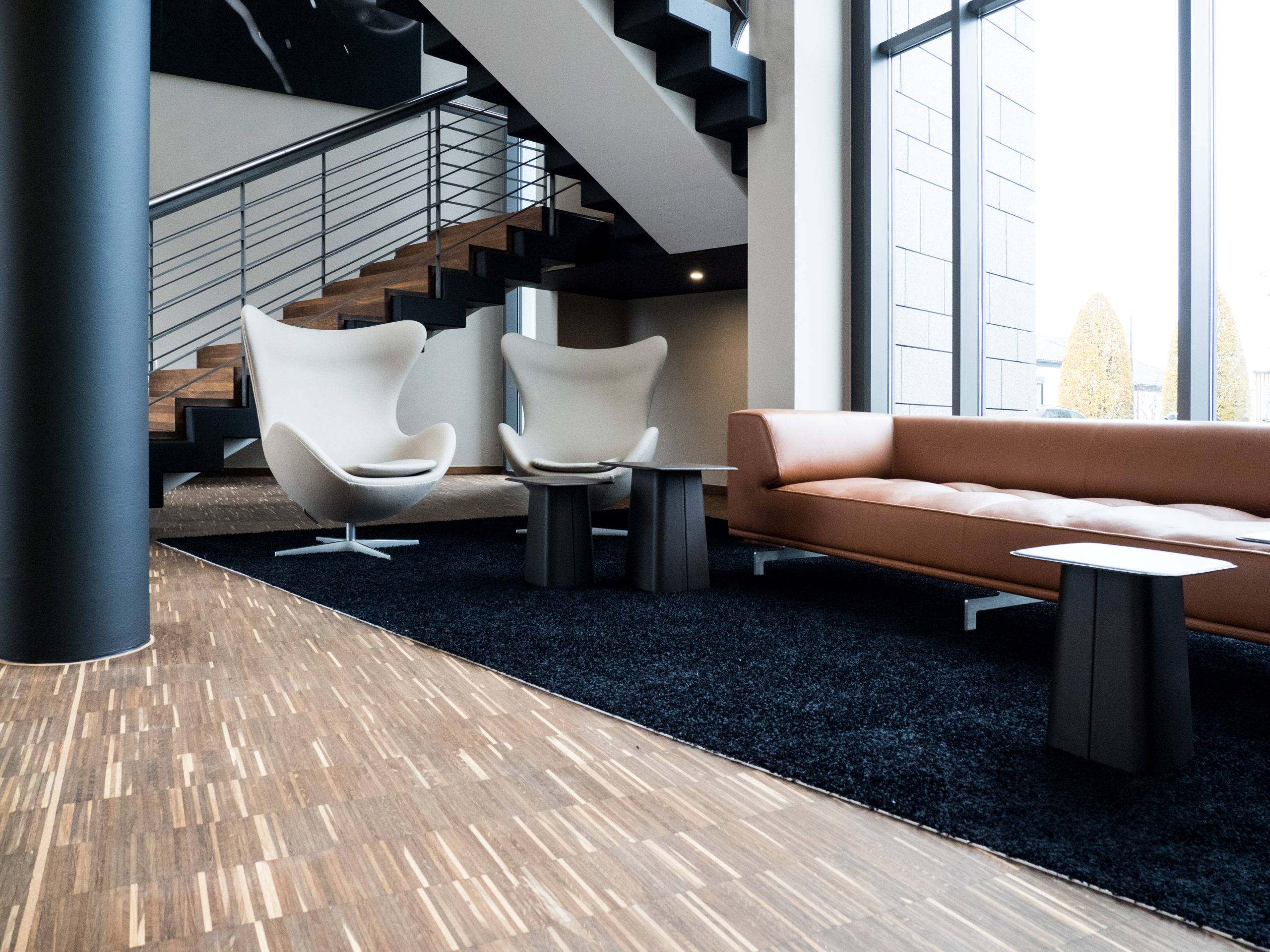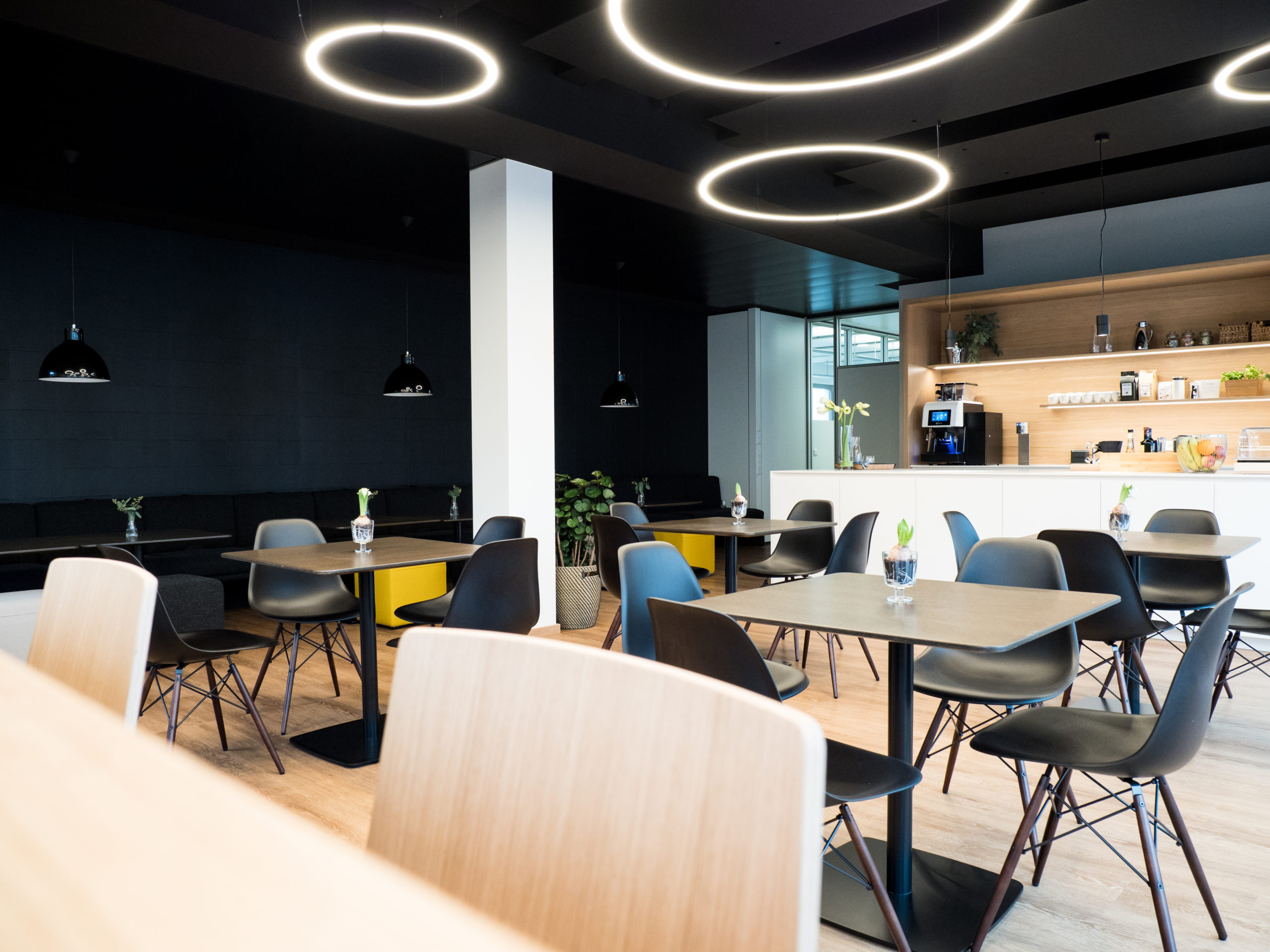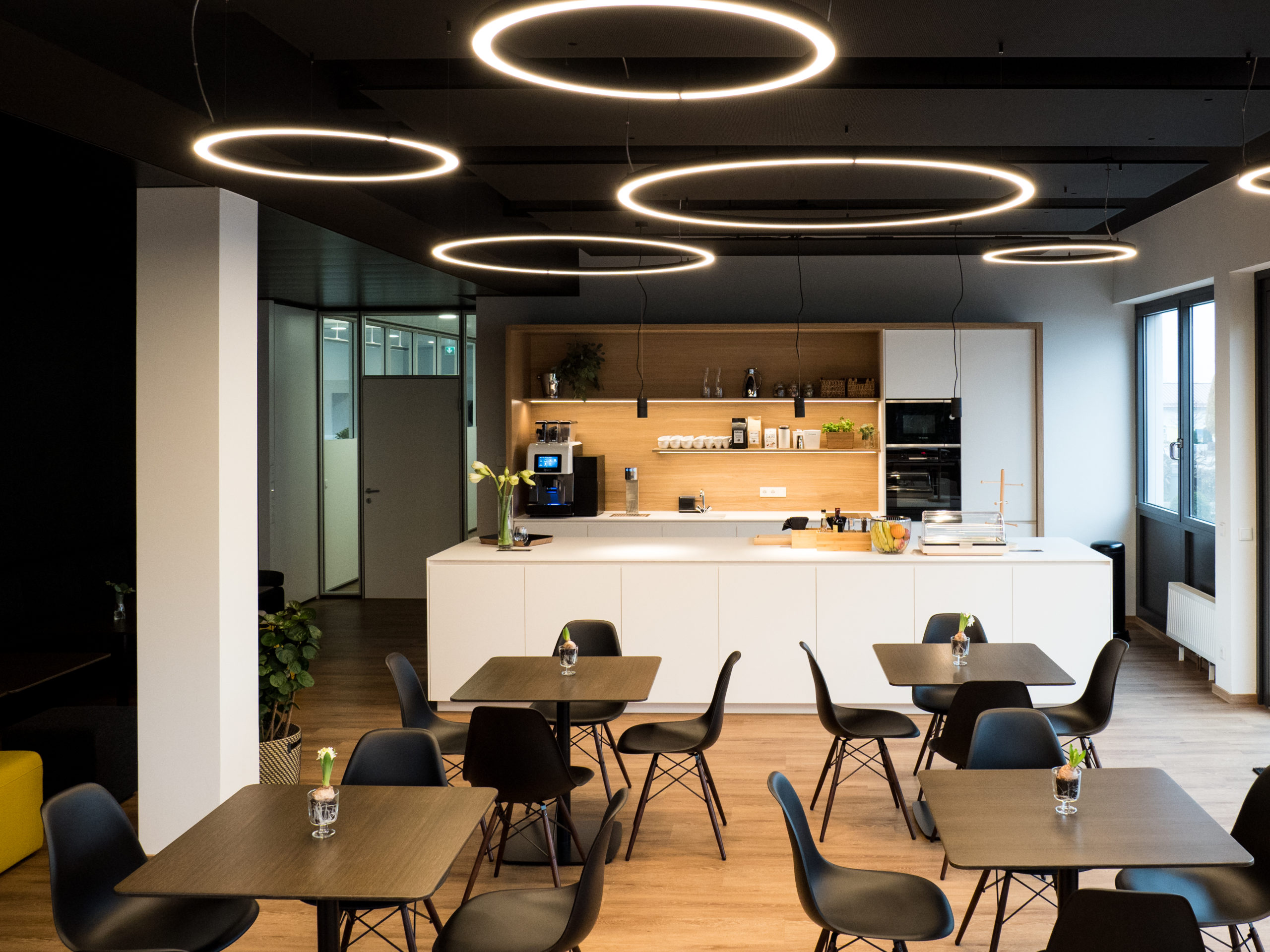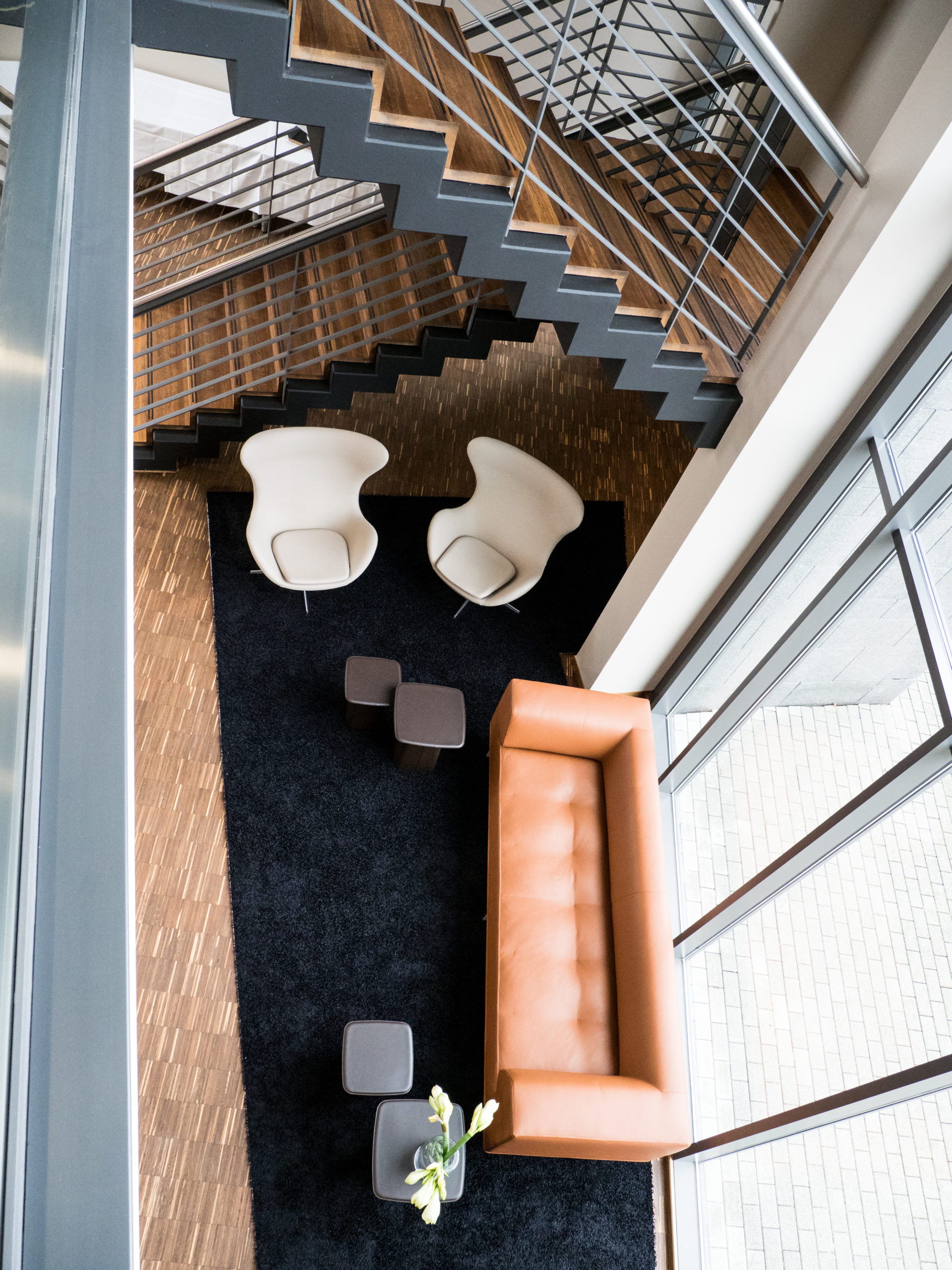 - Büroarbeitsplätze für die Mitarbeiter und für die Geschäftsleitung, Rückzugsbereiche, Lounge, Empfang, Workcafé, Besprechungsräume, Skyroom mit repräsentativer Konferenzeinrichtung wurden ganzheitlich von fritzoffice eingerichtet.