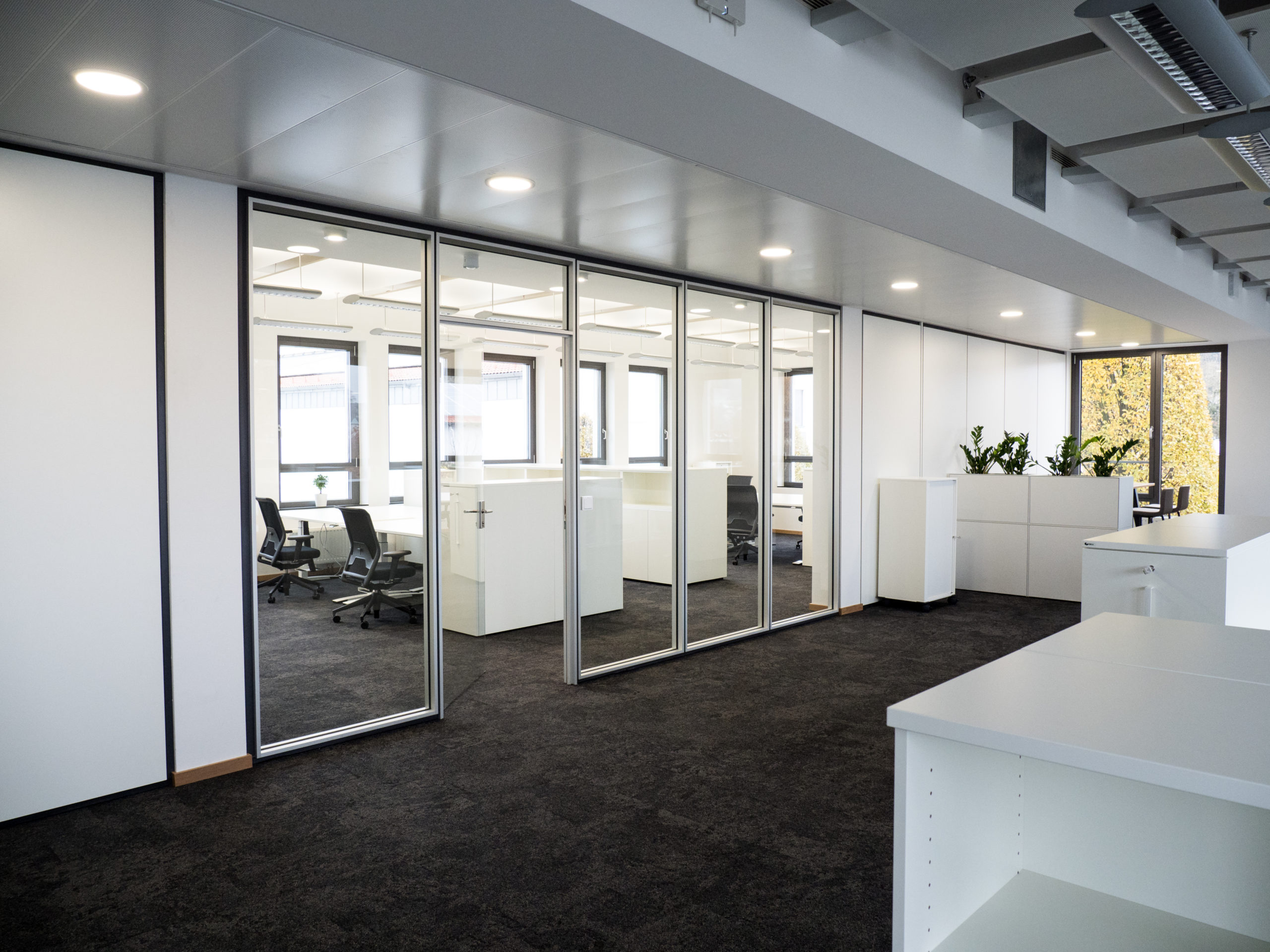 Das bereits von fritzoffice im Jahre 2004 gesamtheitlich eingerichtete Büro wurde nahezu komplett entkernt und völlig neu strukturiert. Dabei wurden fast alle vorhandenen Systemtrennwände neu angeordnet und geringfügig ergänzt. Ziel war es möglichst alle Elemente wieder zu verwenden.