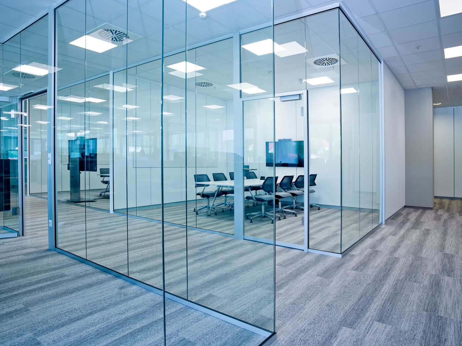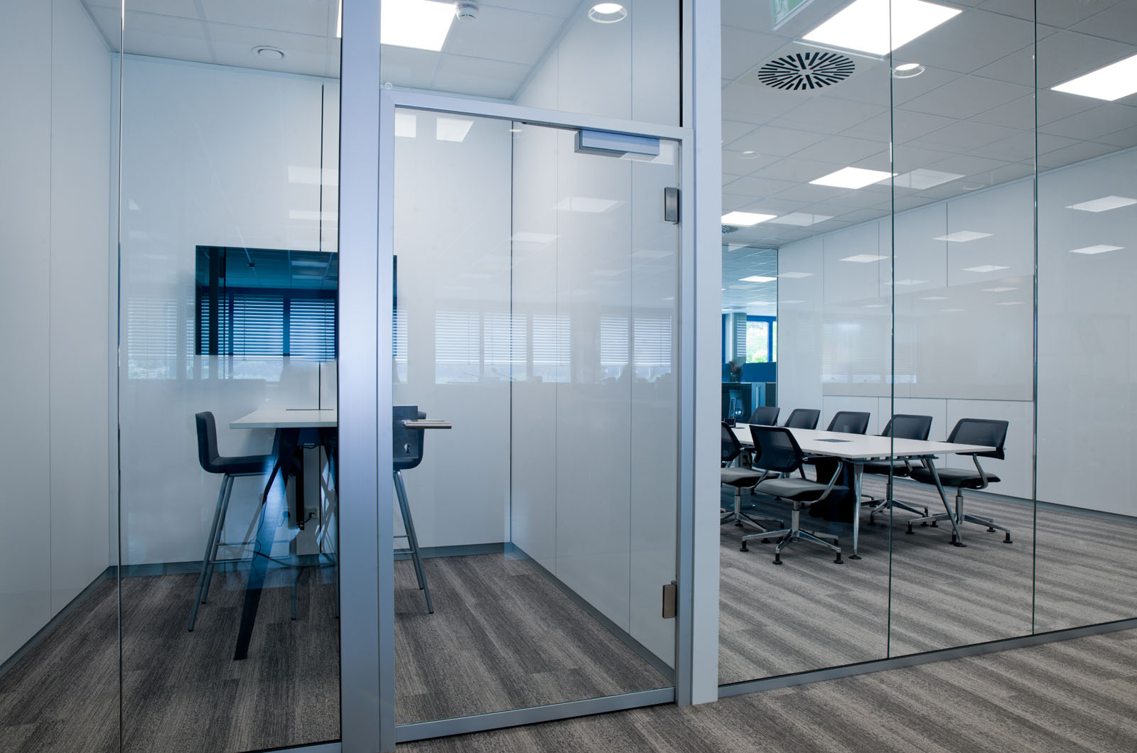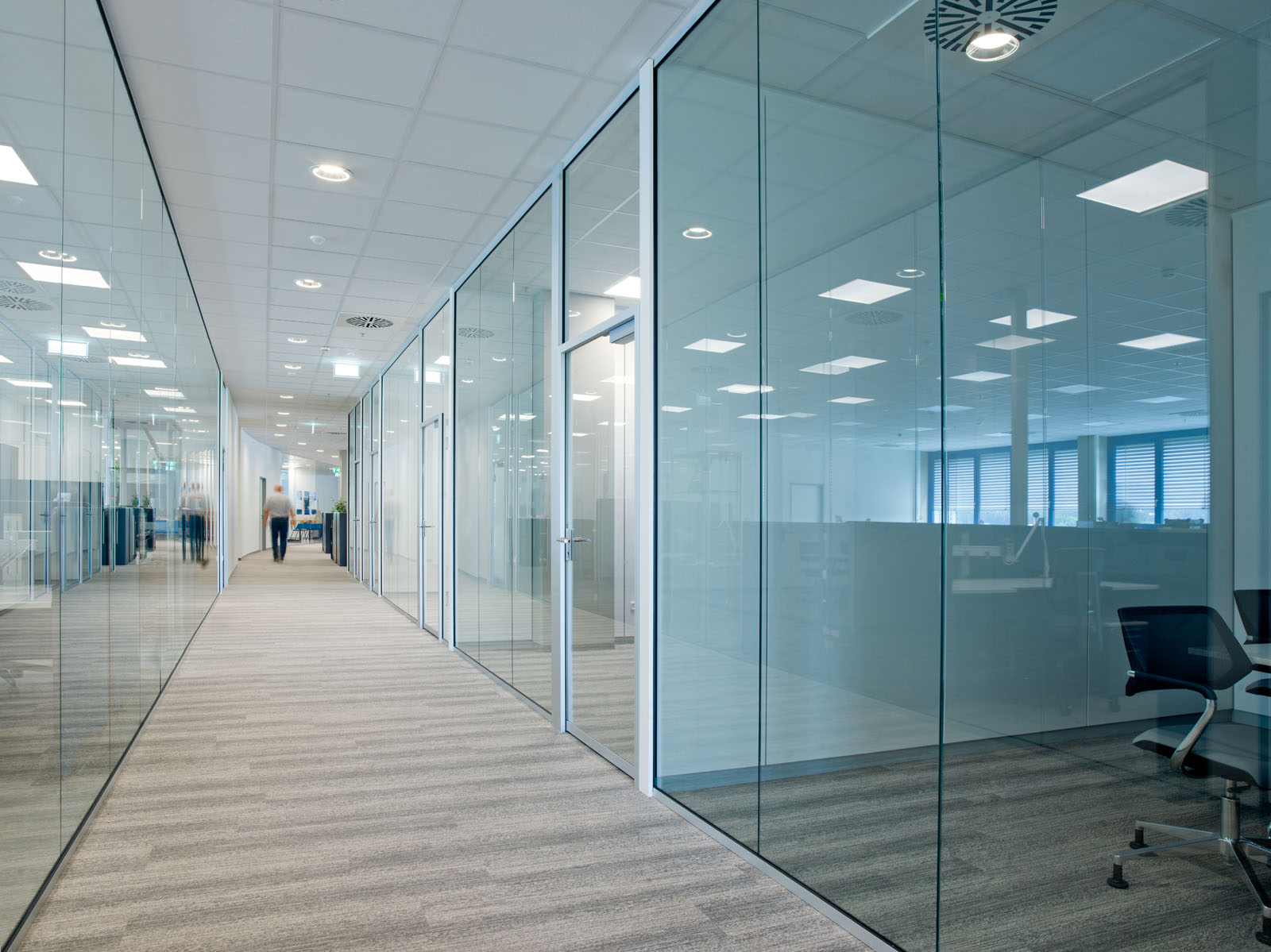 Mehr als 800 laufende Meter Systemtrennwände aus Glas von Goldbach Kirchner mit Medienintegration und beschreibbaren Modulen sind von fritzoffice entwickelt und eingebaut worden.