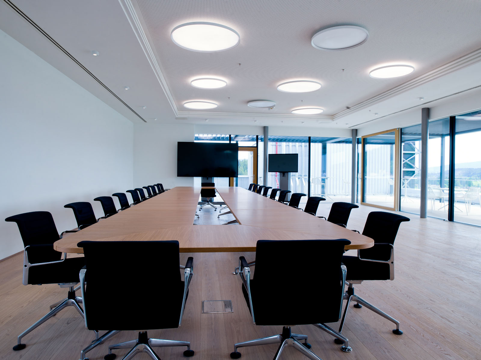 Der Skyroom wurde mit repräsentativen Konferenzmöbeln von Brunner und vitra eingerichtet.