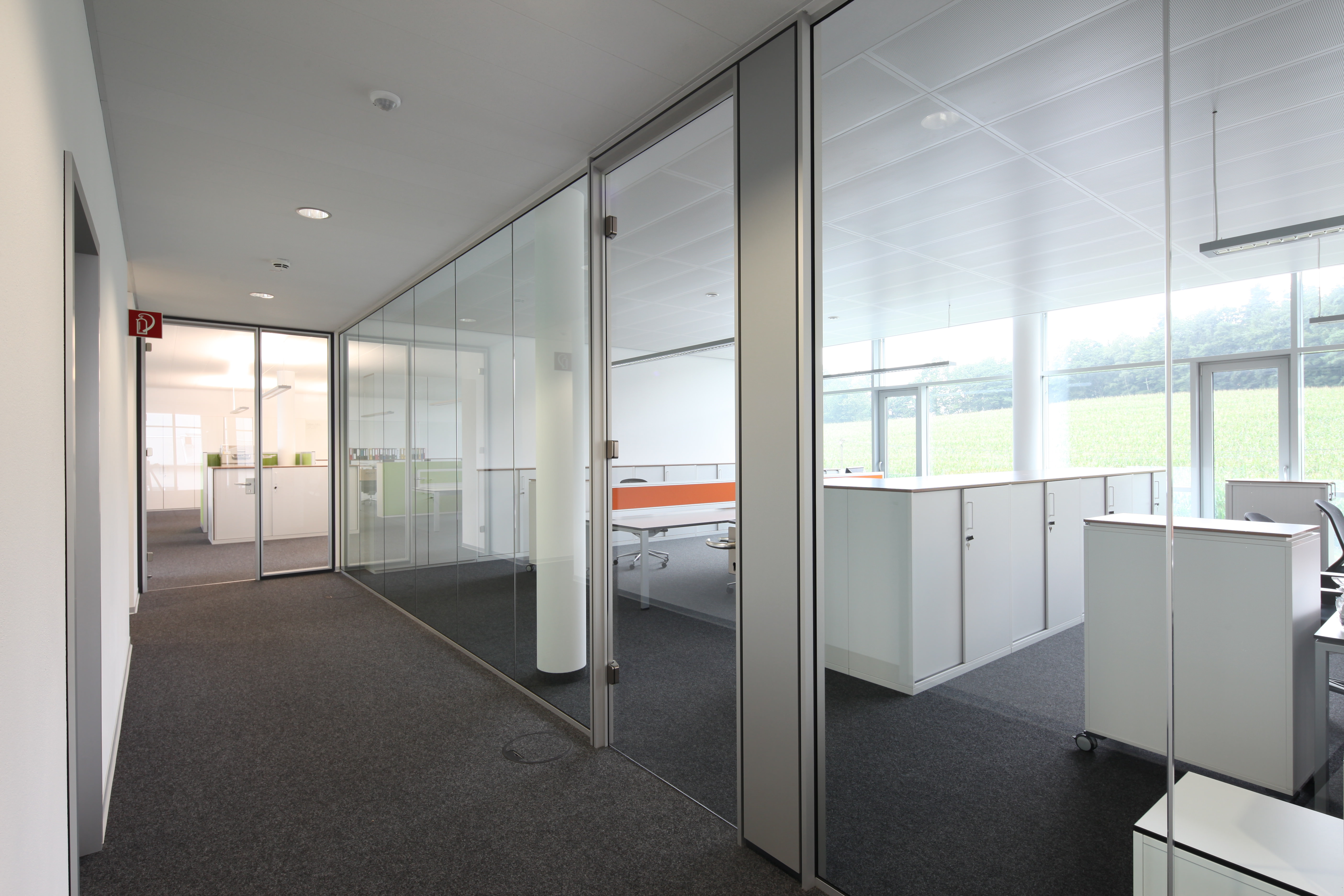 Als attraktive Alternative zum Trockenbau bietet eine Systemtrennwand aus Glas, Melamin-Kunststoff, Furnier oder Stoff immense Vorteile.